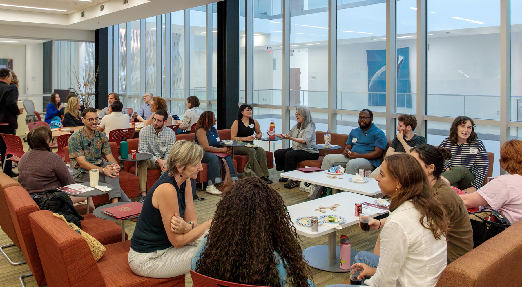 LEFT: Graduate students at the orientation lunch; Director of Museum & Cultural Heritage Studies Mora Beauchamp-Byrd with new MCHS students; Undergraduate students at the Fall BA Fair social in the Art & Design Library.